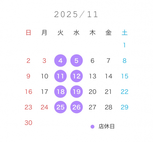 11月の店休日となります。