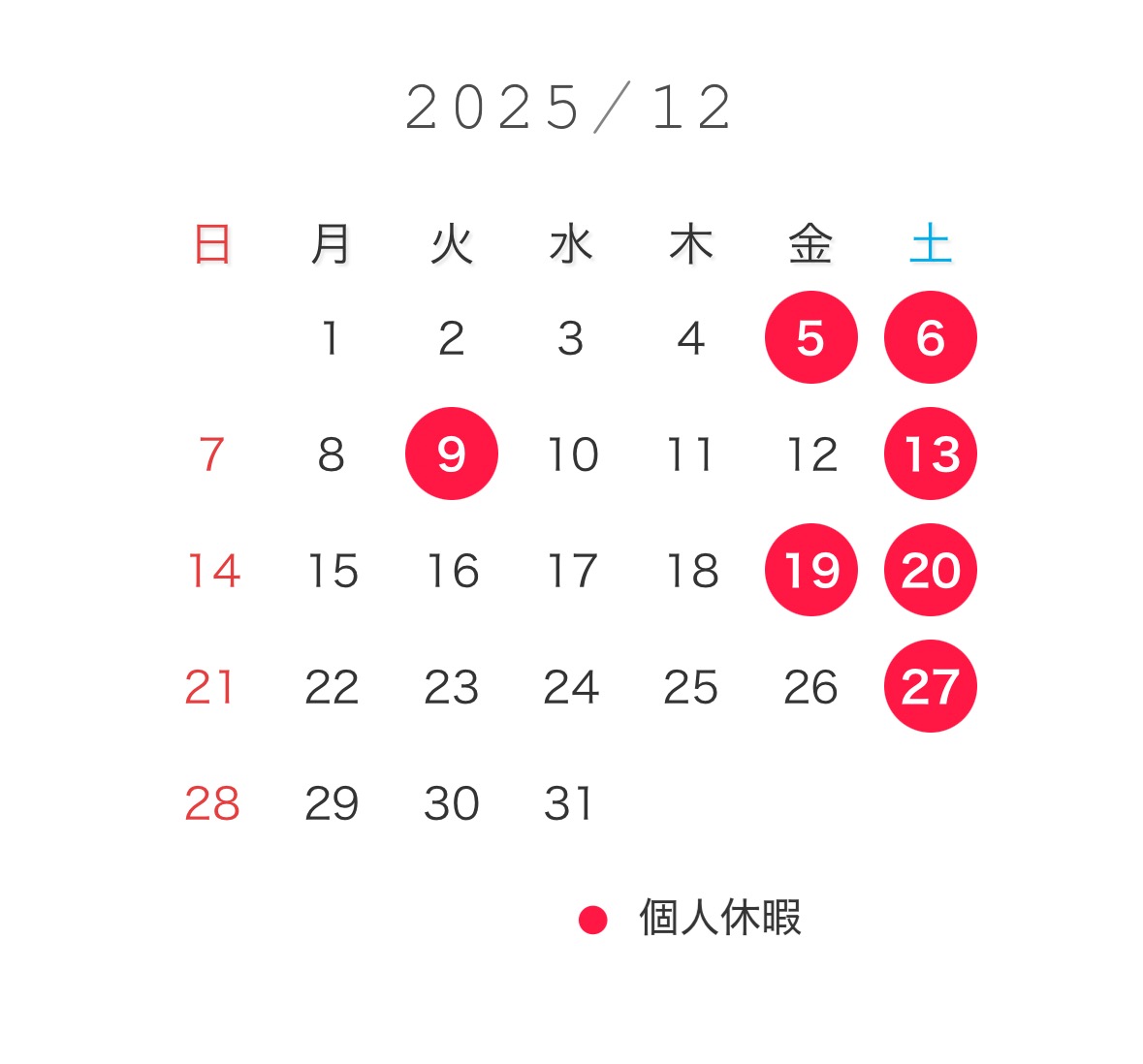 巻渕 2025年12月 休暇