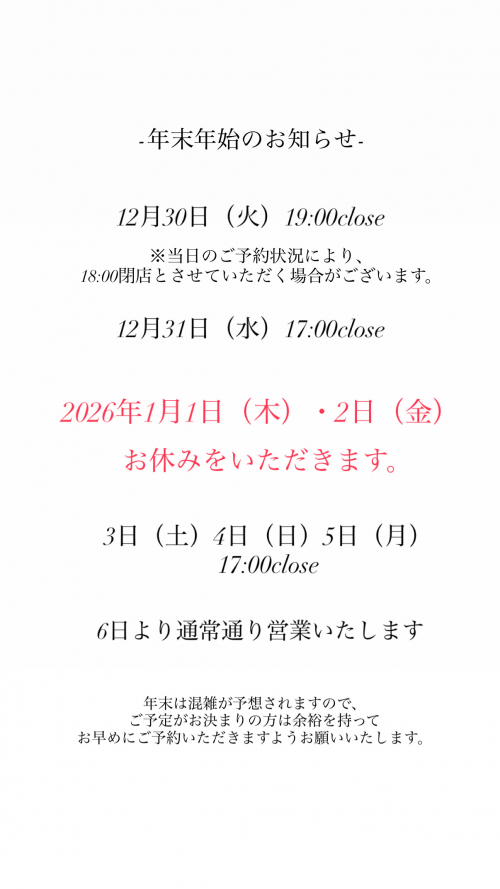 年末年始のお知らせ